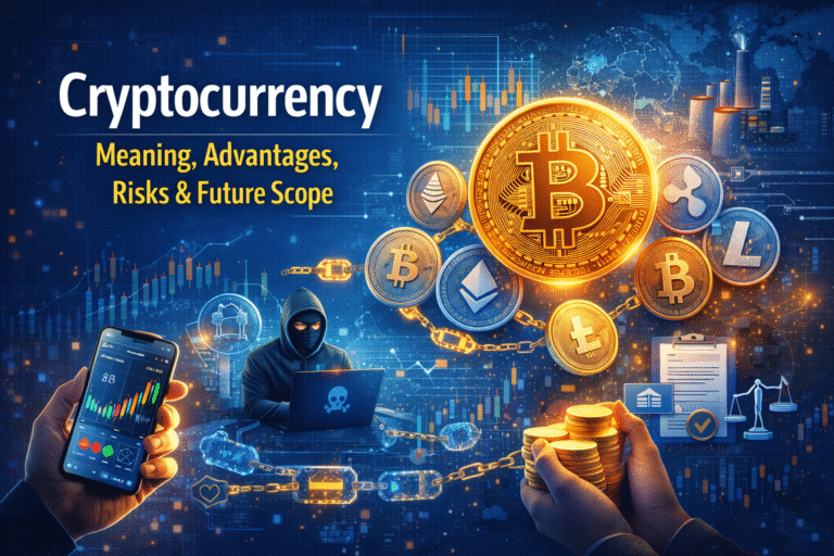 Cryptocurrency is a form of digital or virtual currency that uses cryptography for security. Unlike traditional money issued by governments(fiat currency) , cryptocurrencies operate on decentralized networks based on blockchain technology. Bitcoin, introduced in 2009 , was the first cryptocurrency, and since then thousands of digital currencies such as Ethereum , Ripple, and Litecoin have emerged. Cryptocurrency has transformed the way people think about money , investment , and financial systems.Cryptocurrency is a digital asset designed to work as a medium of exchange. Transactions are recorded on a public ledger called the blockchain , which ensures transparency , security and immutability. Cryptocurrencies are generally decentralized, meaning they are not controlled by any central authority like a bank or government.